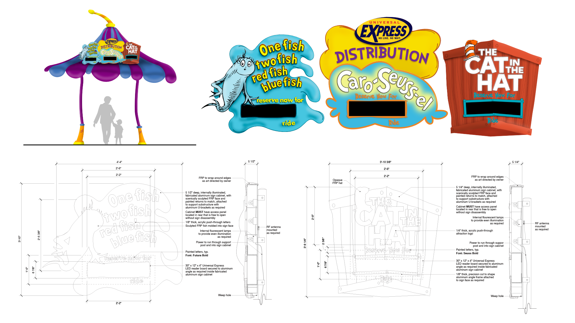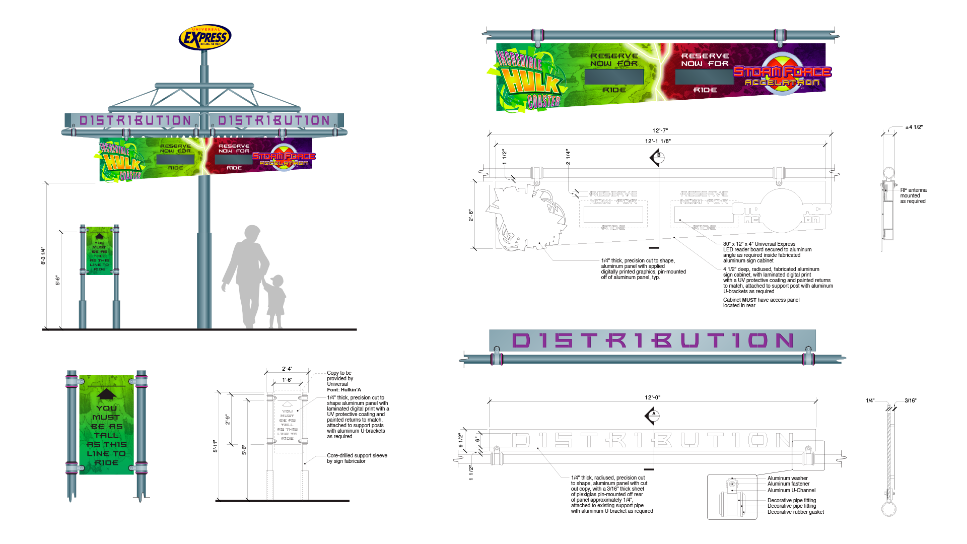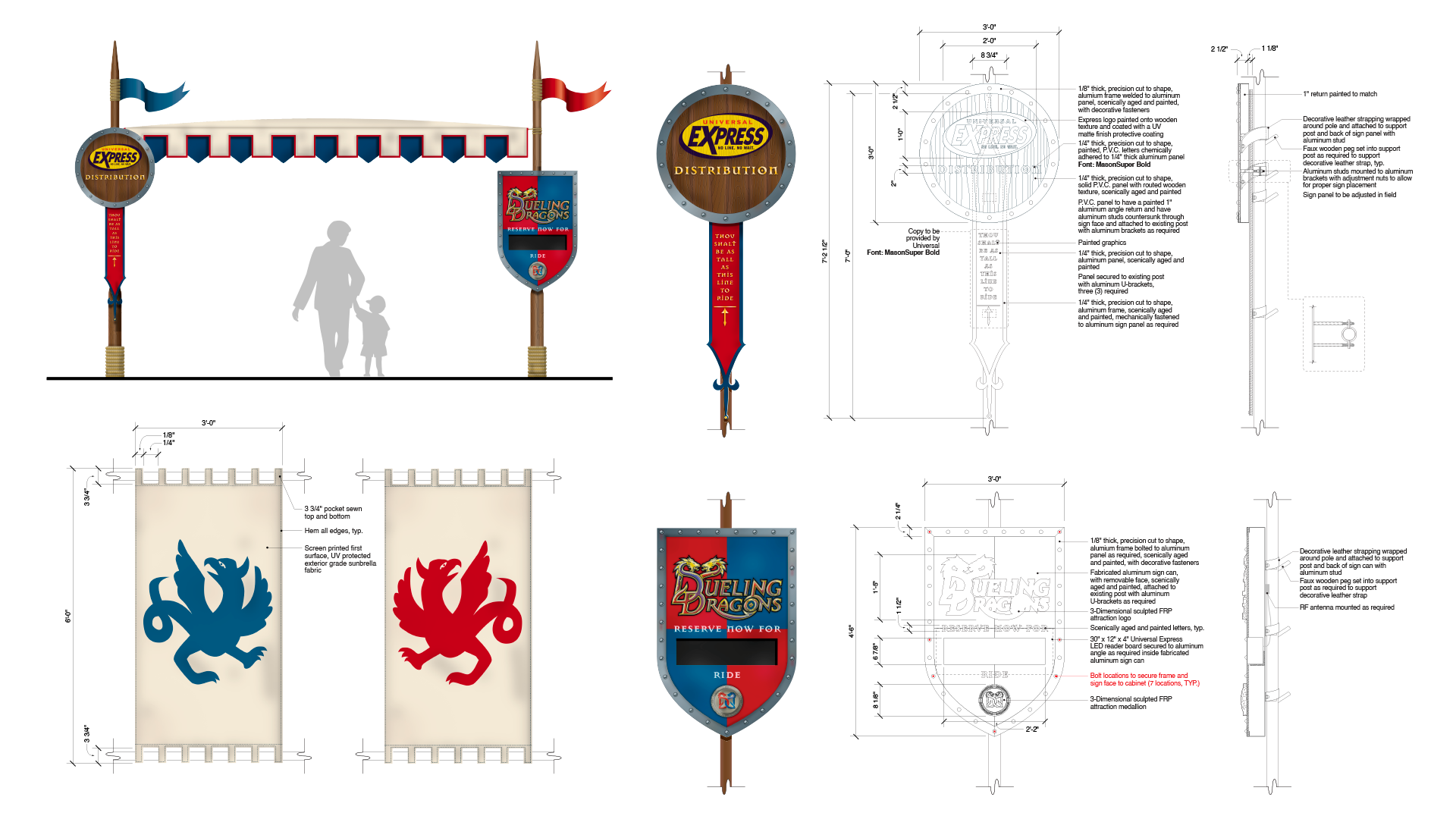 The Universal Express distribution system required a flexible signage approach capable of adapting to multiple themed environments while maintaining a consistent operational function. Working with Falcon’s Treehouse, I designed custom Express signage for individual lands throughout Universal’s Islands of Adventure, each tailored to its surrounding architecture, materials, and narrative style.